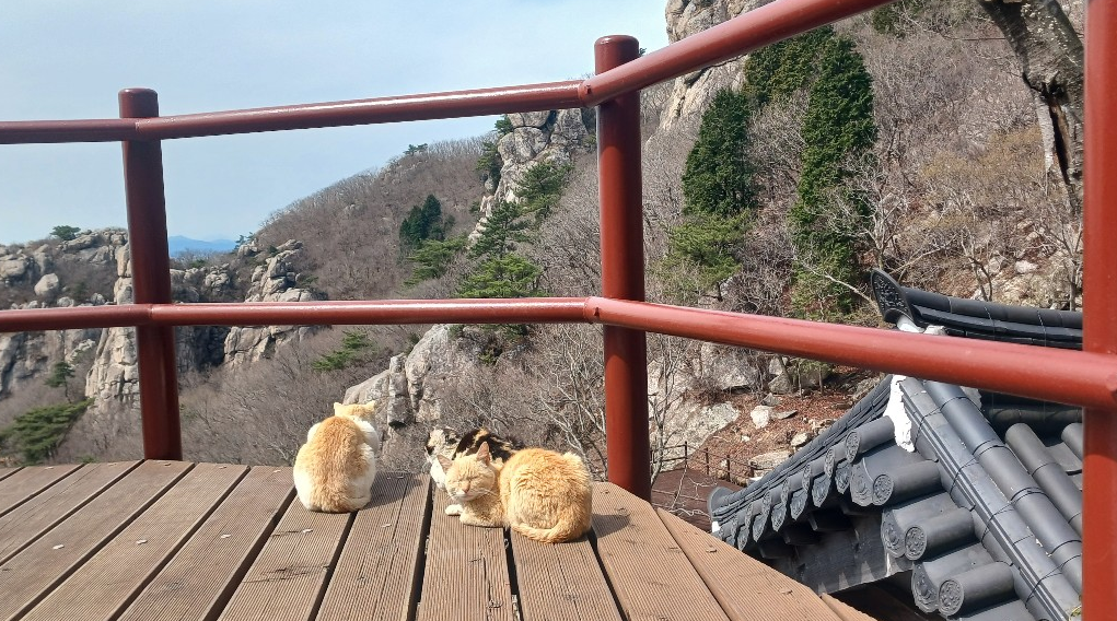 보리암에서 귀여운 고양이를 만나서 반가웠어요. 편안하게 지내는 모습을 바라보며 바쁜 나의 일상에도
