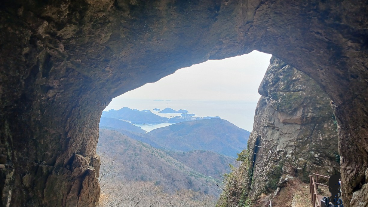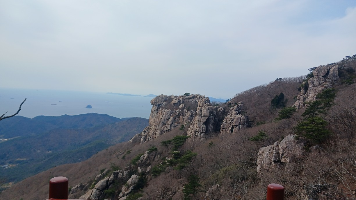산과 바다가 보이는 아름다운 경치를 바라보니 땀을 흘리며 올라옴에 감사함과 행복한 미소가 절로 나옵니다.
